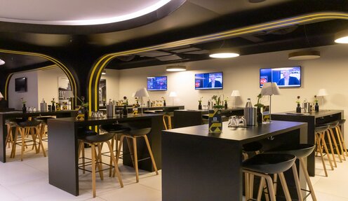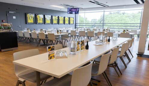 The best seats in the west stand with a regulars' table atmosphere: in our VIP area, ‘EVONIK Stammtisch’, you can take a seat at your own company table.